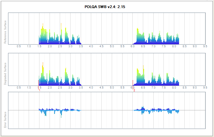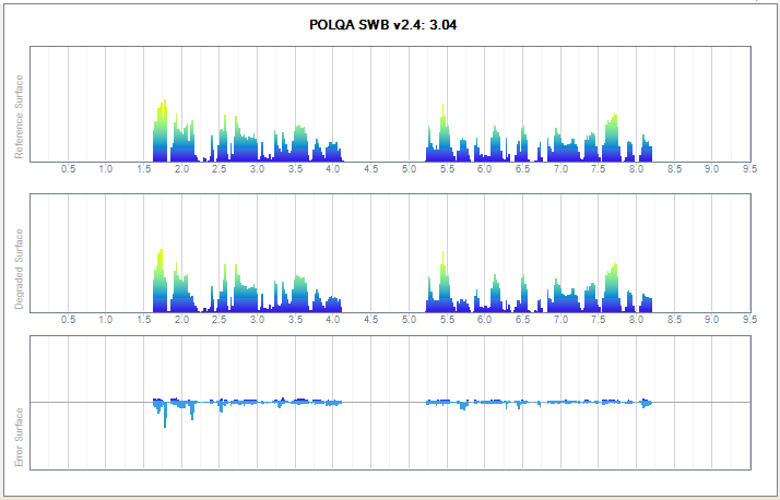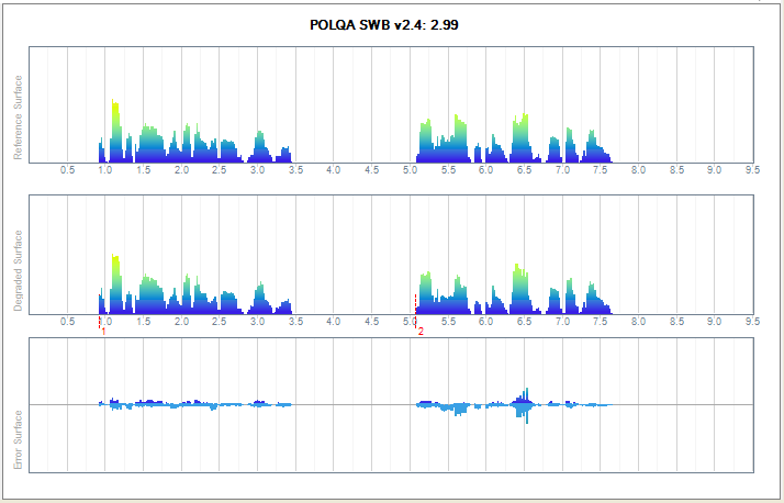 Across the LTE network the score is around 2 (Poor) using the ITU-T Rec. P.863 POLQA v2.4 SWB model.