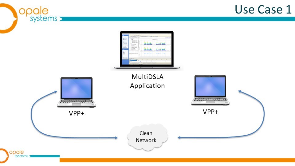 The use cases described below discuss the use of the Opale Systems MultiDSLA test system with VPP+ nodes (User Case 1) and DSLAII and VPP+ nodes (Use Case 2).