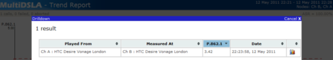 Estimate the position where the optimum speech quality occurs. Double click on the curve at this point to drill down and then click on the icon in the last column to open the result into Results Analyser.