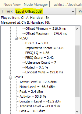 If the level is too low then the noise floor will degrade the speech quality score. If the level is too high then amplitude clipping will degrade the score. The optimum level will be a point somewhere between these extremes. The “best” level can be identified by repeating a speech quality test at different levels, starting at a very low level and increasing in 3dB steps, using the tasklist here. Note that this works with English as the locale - there are issues with Chinese and German language operating systems. These will be resolved soon.