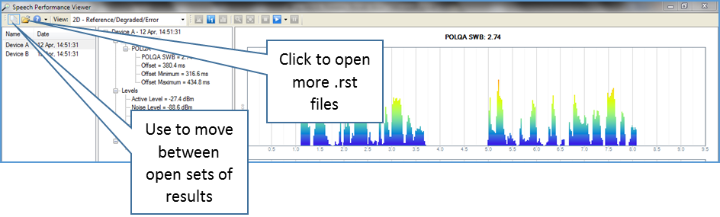 Viewing results with the SPV is even more powerful than viewing them in the MultiDSLA Results Analyser, as in the SPV, you can have more than one .rst file open at any one time. In fact, you can have any number of .rst files open simultaneously. This makes it easy to compare test results.