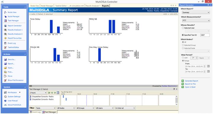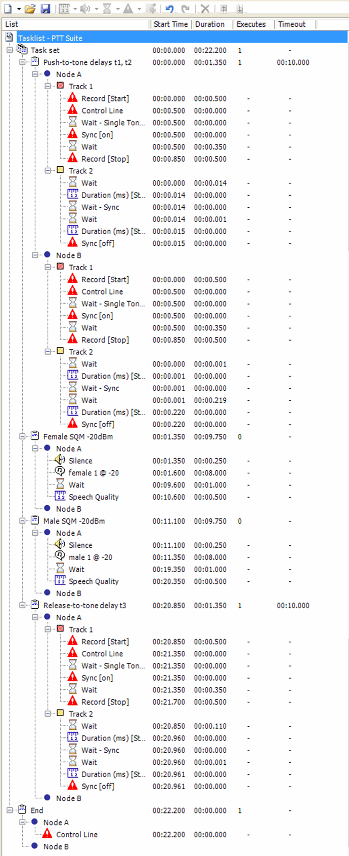The tasklist below shows a typical test suite which accomplishes all the measurements mentioned above; the subsequent screen shots show examples of results presentation.