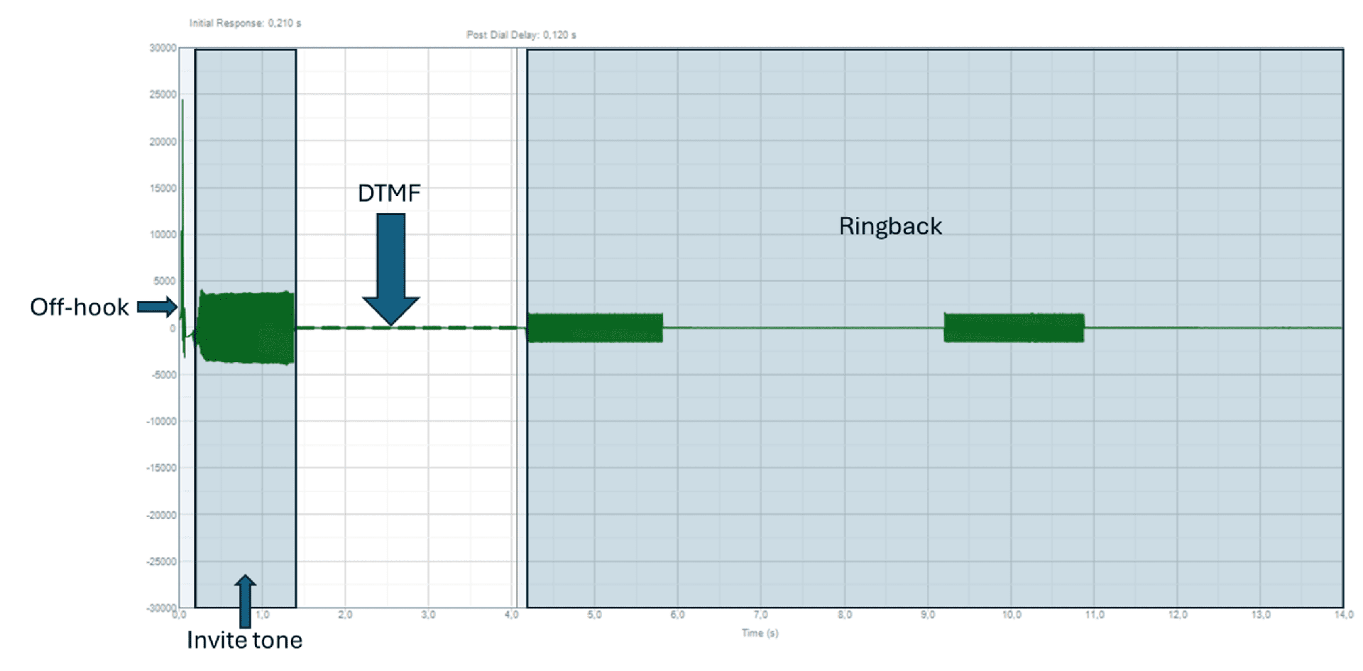 b. The PBX will send a tone. This is called a dialing tone. This is where we calculate the initial response delay.