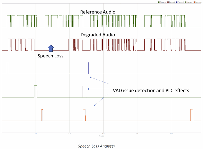 - A range of popular metrics : MOS, Signal Latency, Percentage of speech loss, Speech/Noise levels