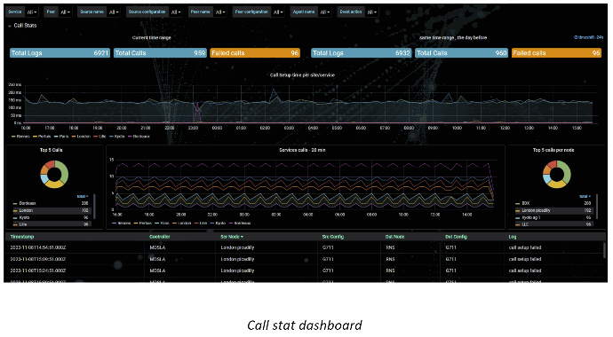 Thanks to VPP, monitoring SIP services has not been so easy. Through call stats dashboard, you can monitor the global activity and call setup time. In the same view, you monitor the main call failures.
